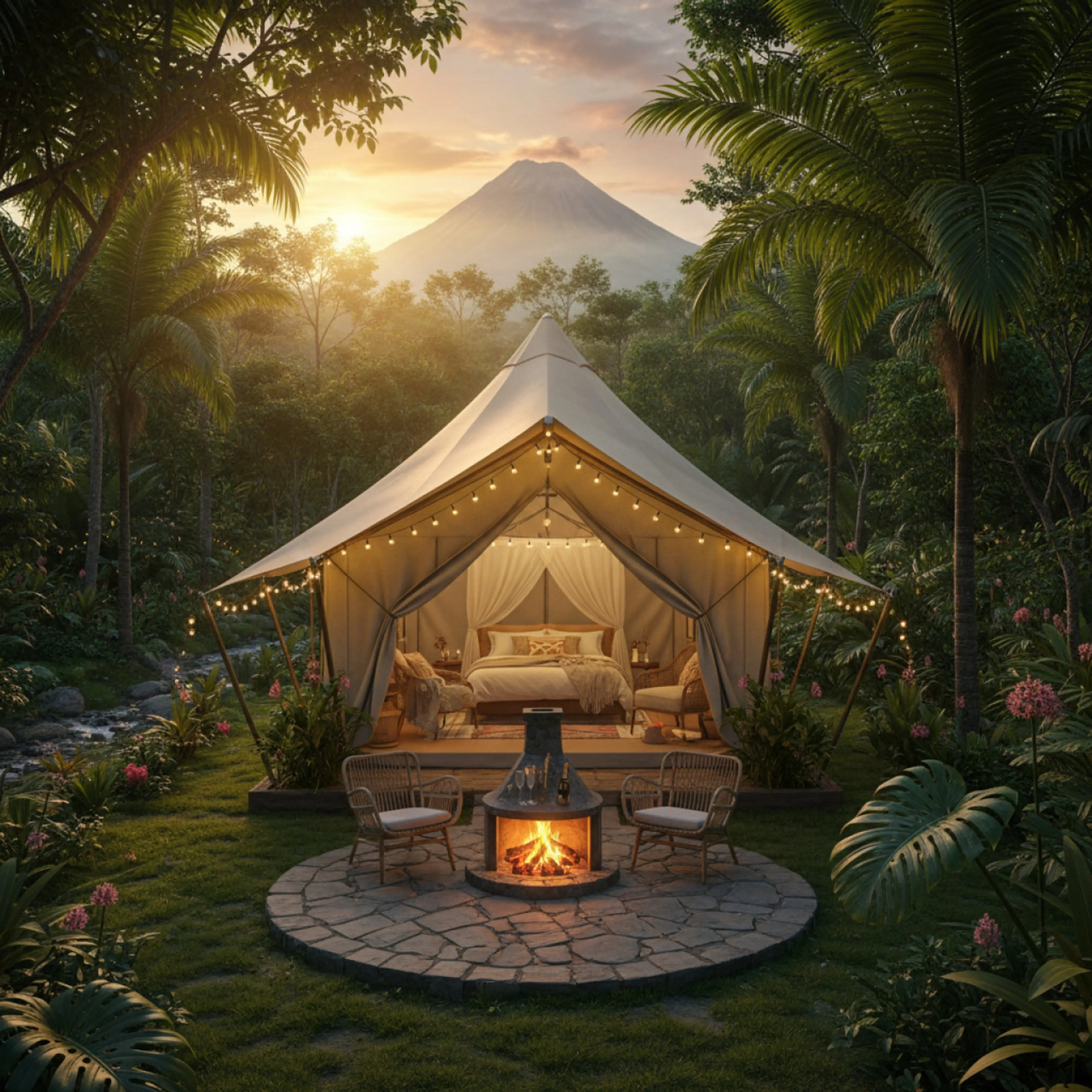 Glamping in the tropical forest, fireplace and private garden